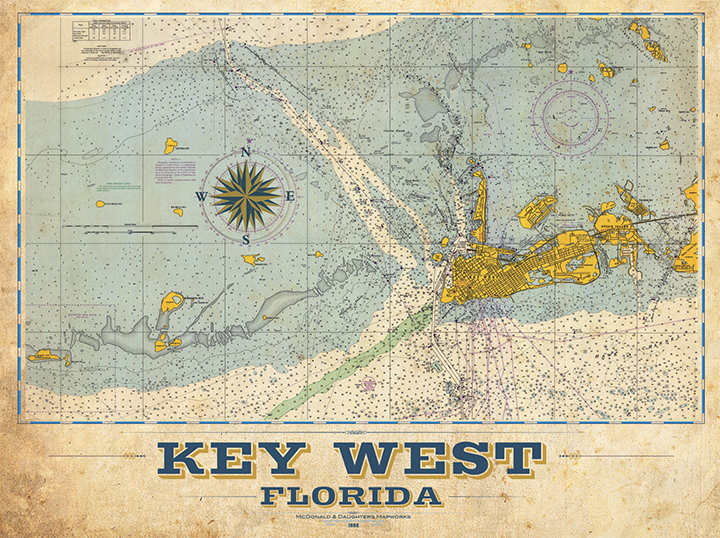 Key West Nautical Chart โ LOST DOG Art & Frame