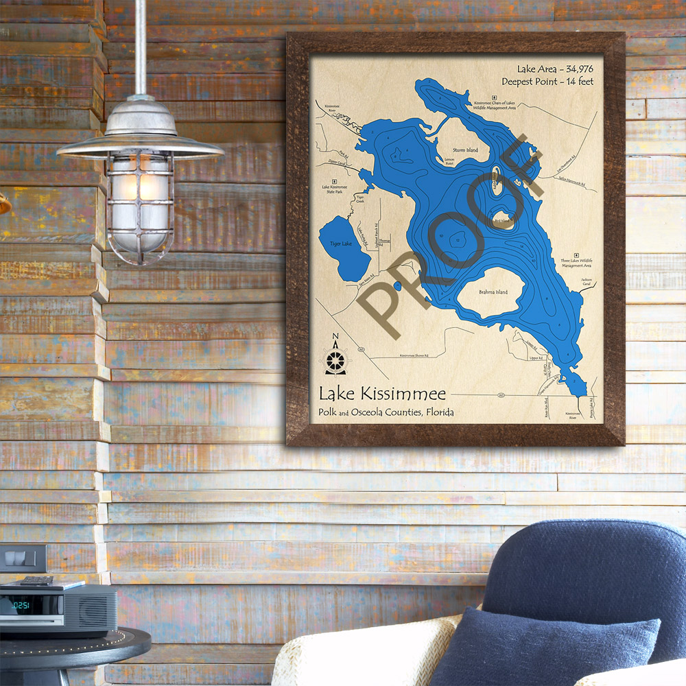Lake Kissimmee, Florida 3D Wood Map | Laser etched Nautical Decor